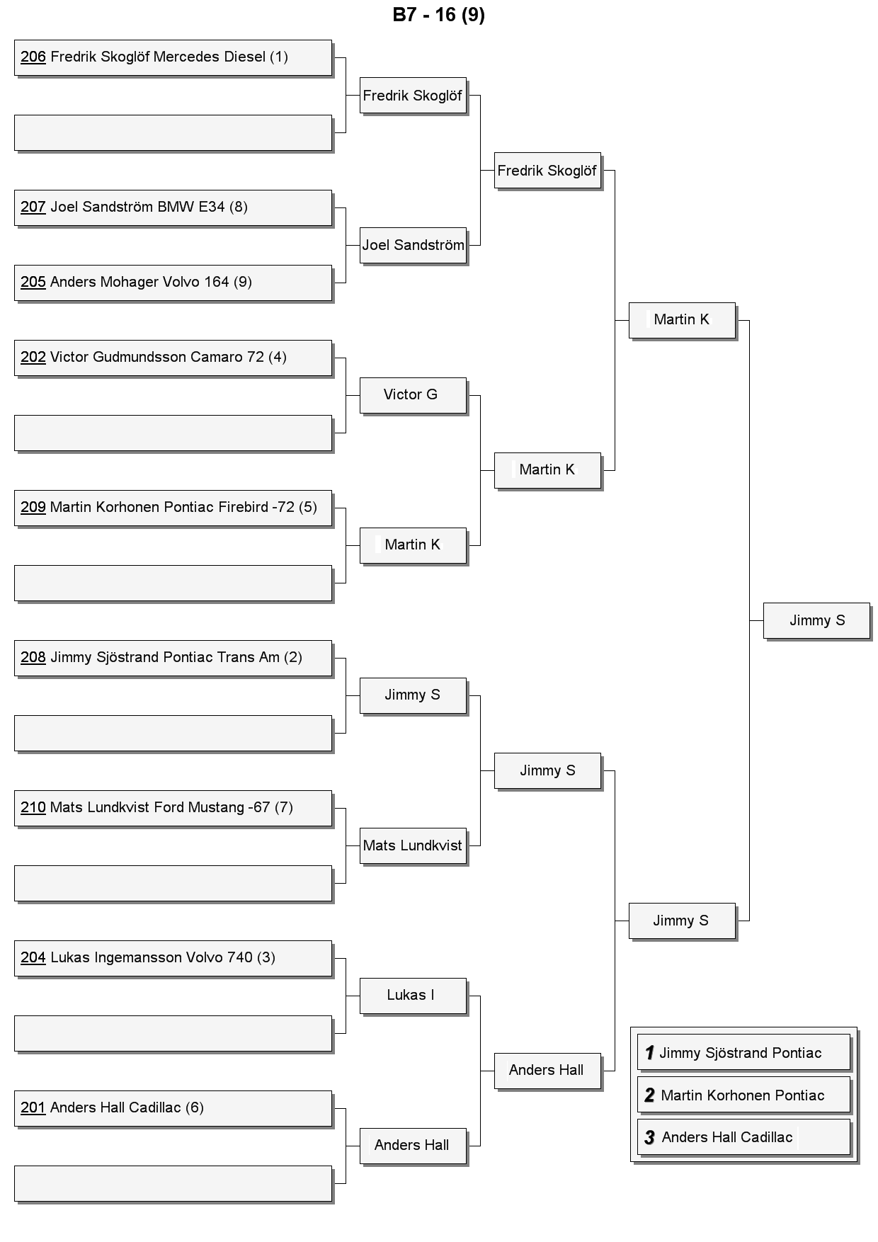 | 2 | 208 | Jimmy Sjöstrand | Pontiac Trans Am | 7,232 | 164,0 | 1,850 | 0,355 |