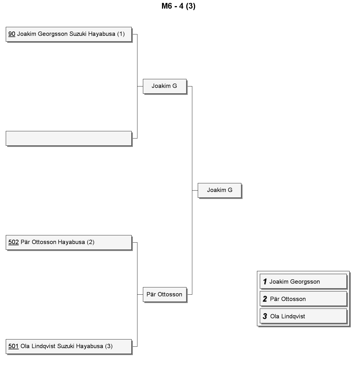 | 3 | 501 | Ola Lindqvist | Suzuki Hayabusa | 6,422 | 186,5 | 1,781 | 0,266 |